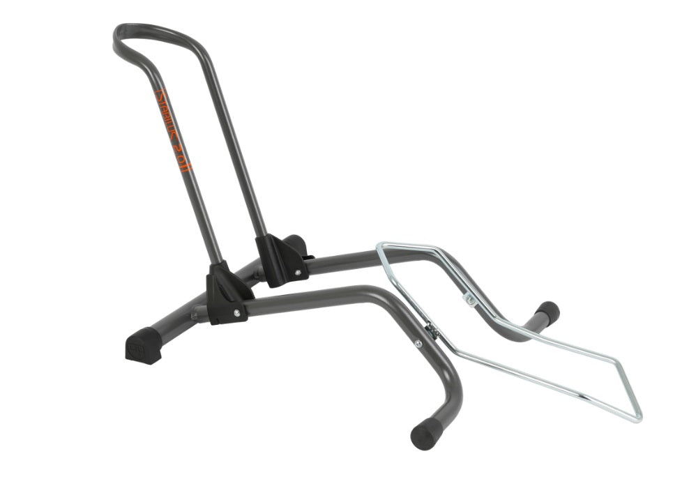 The Stabilus 2.0 is the further development of the Stabilus. What distinguishes this bike stand from its predecessor is the possibility to fold it. With this system, it can be taken anywhere thanks to a practical bag that is included. The Stabilus 2.0 Inox bike stand is suitable for all types of bikes: from e-bikes to road bikes. It weighs only 2.5 kg and measures 44x41x15cm when closed. Like the Stabilus, the Stabilus 2.0 Inox has an innovative swing system and offers excellent stability on both the rear and front wheel. In addition, it rests only on the tires and does not damage the spokes or the frame.