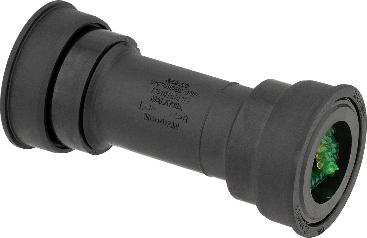 The Shimano BB-MT500-PA is a bottom bracket for press fit installation, which is recommended for Deore cranks. This allows Hollowtech II-compatible cranks with 24 mm axles to be mounted on MTB frames with bottom bracket widths measuring 89 to 92 mm. The shells and sleeve of this press fit bottom bracket are made of plastic.