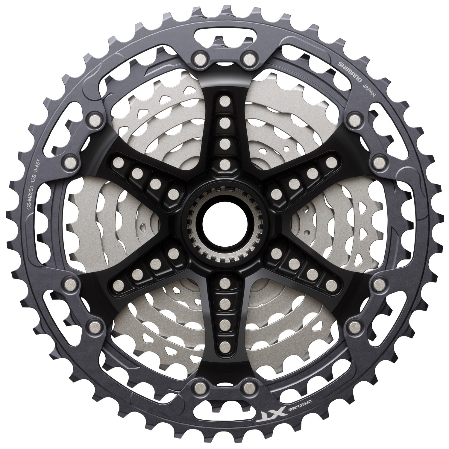 - Compact drivetrain: In combination with smaller chainrings and the XT rear derailleur with medium cage, the 9-45 XT cassette offers a lightweight option with high ground clearance and an uncompromising 500% gear range