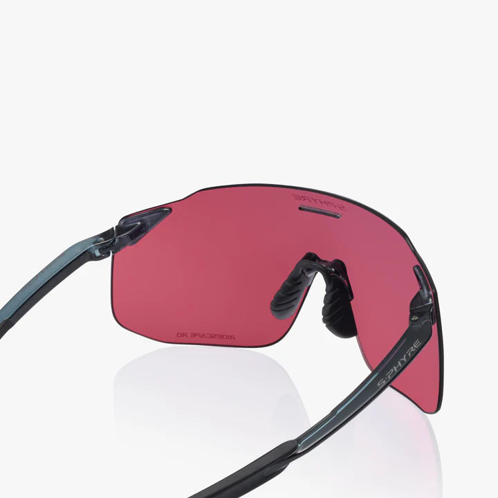 High-performance S-PHYRE eyewear featuring a super lightweight, rimless design and interchangeable, one-piece lens for racers looking to drop every gram of weight possible. The invisible frame and nose piece create a sleek, aerodynamic look while curved temples ensure a secure fit on any terrain.