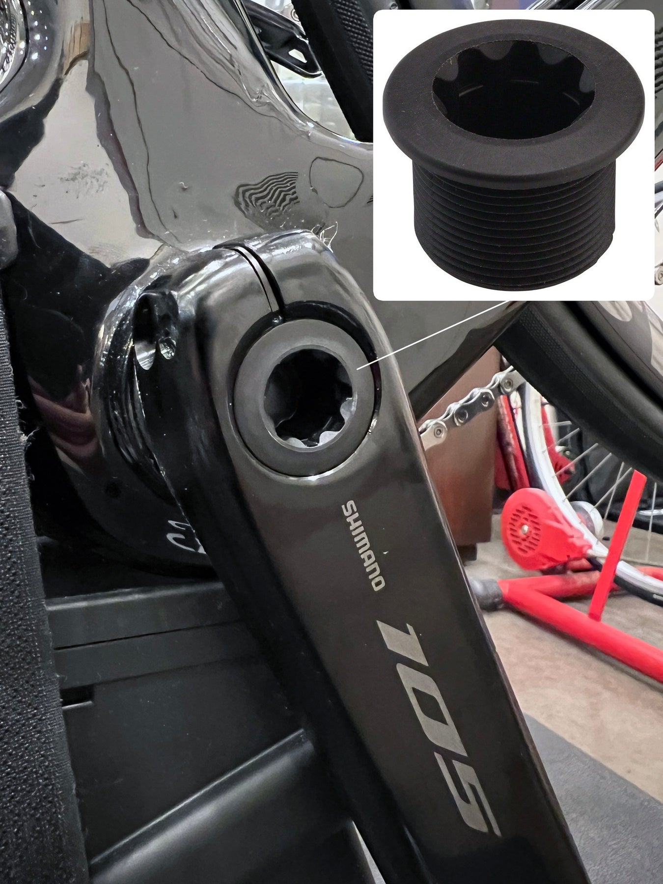 Replaces the plastic OE preload bolt on 24mm Shimano cranks. Black anodized aluminum for a clean and precise fit.