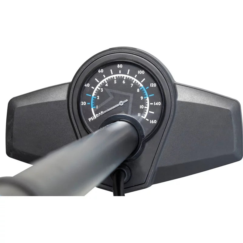 Designed to provide you with a better sports’ bicycle experience the PRO Floorpump Competition features a classic design with a dual, Presta and Schrader, head. It features a robust steel barrel, can inflate your tyres to 11 Bar/160 PSI and boasts an oversized analogue gauge to allow you to perfectly dial in your perfect tyre pressure.