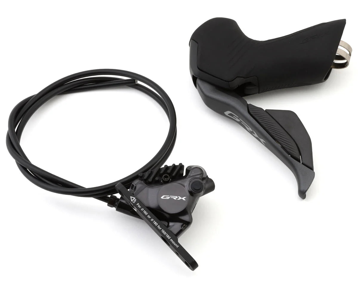 The 12-speed SHIMANO GRX Di2 DUAL CONTROL LEVER delivers fast, wireless shifting for gravel and mixed-terrain riding. The ergonomic lever features raised hoods, ribbed surface texture, and an anti-slip coating on the brake lever for increased security and control. The hood body is newly optimized for seamless integration with flared handlebars while retaining the gravel-specific third button location. To complete the cockpit, RX825 levers are compatible with three satellite shifter options and feature SHIMANO FRONT SHIFT NEXT functionality to maximize rider customization options.