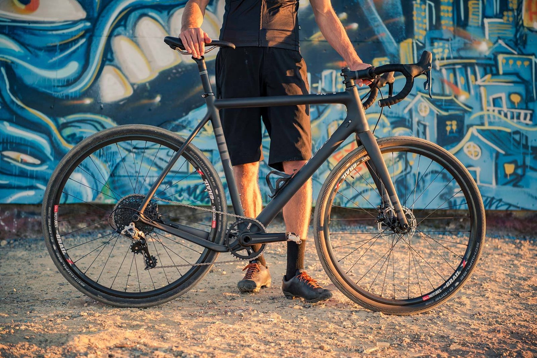 The Hak­ka MX has flat-mount disc mounts and fits a 160mm rotor. The ENVE G Series Grav­el fork has fend­er eye­lets, inter­nal cable rout­ing and mon­ster clear­ance for 700c x 50c or 27.5″ x 2.25″ tires. There’s also a remov­able rear fend­er mount on the seat stays.