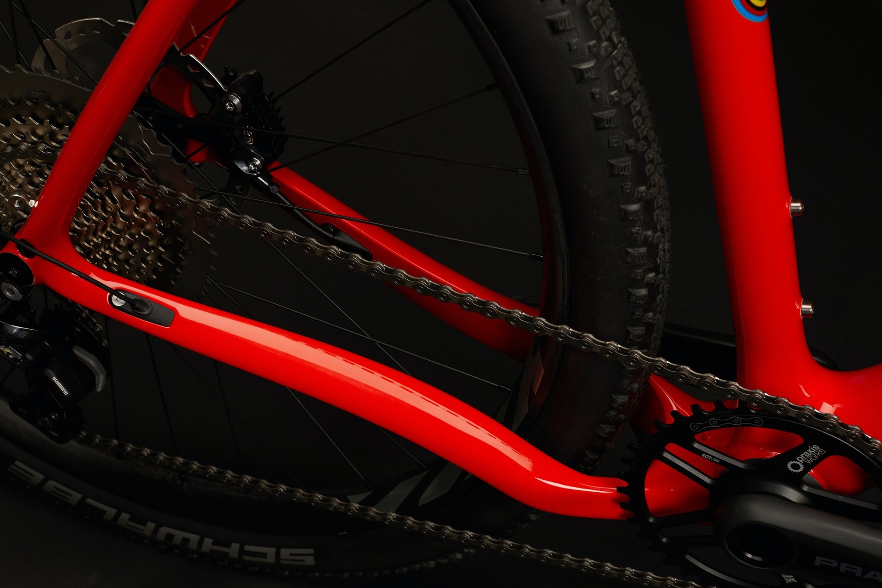 It’s good to have options. With the Hak­ka MX, you can run road, cross and grav­el friend­ly 700c wheels, or if you are into burli­er back­coun­try explo­ration, go with 27.5/650b. With the Hak­ka MX, you don’t have to pick one tire option or the oth­er. Our sub­tle sculpt­ed chain­stays give the frame clear­ance for up to 700 x 40c or 27.5 x 2.1” tires.