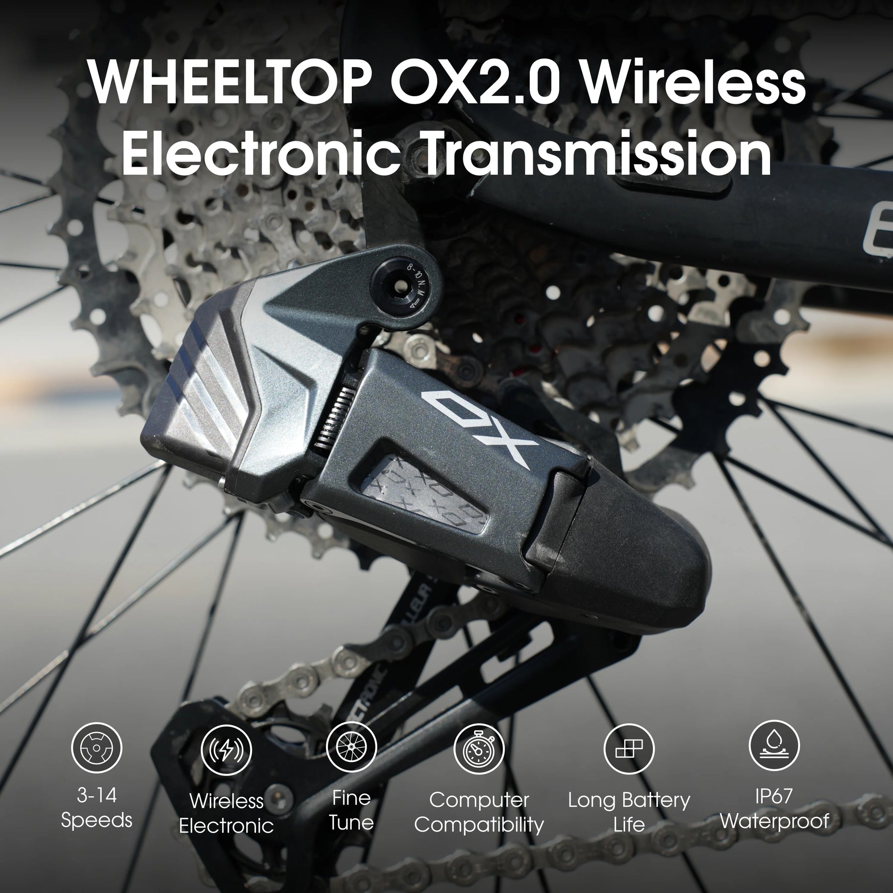 The Wheeltop EDS OX 2.0 converts any mechanical groupset into one with wireless electronic shifting. Compatible with flat bar groupset with 1x setup (Single front chain ring). It is compatible with any external rear derailuer, customisable from 3 to 14 speeds.