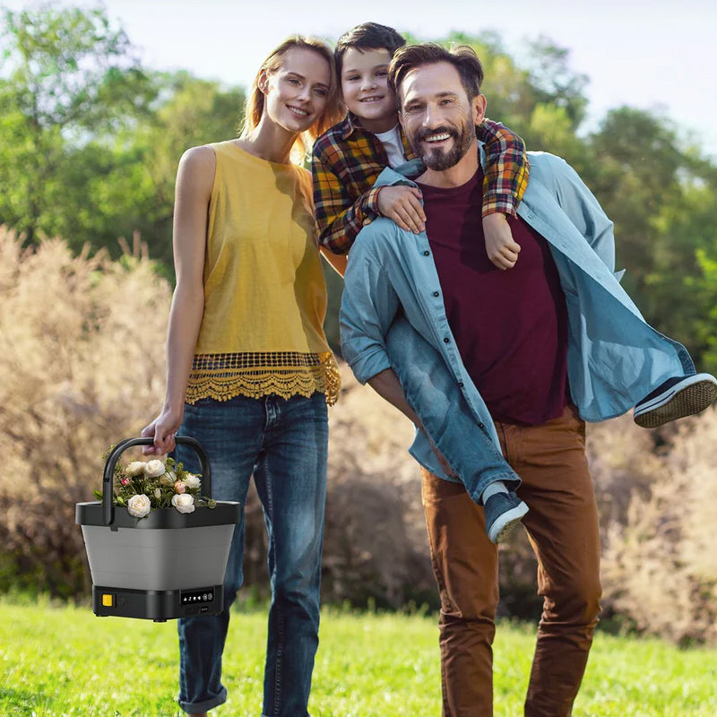 Fold-up size for on-the-go convenience, with professional tools packed inside. Easy to pack in trunk, or expand to a 3.2Gal tank.