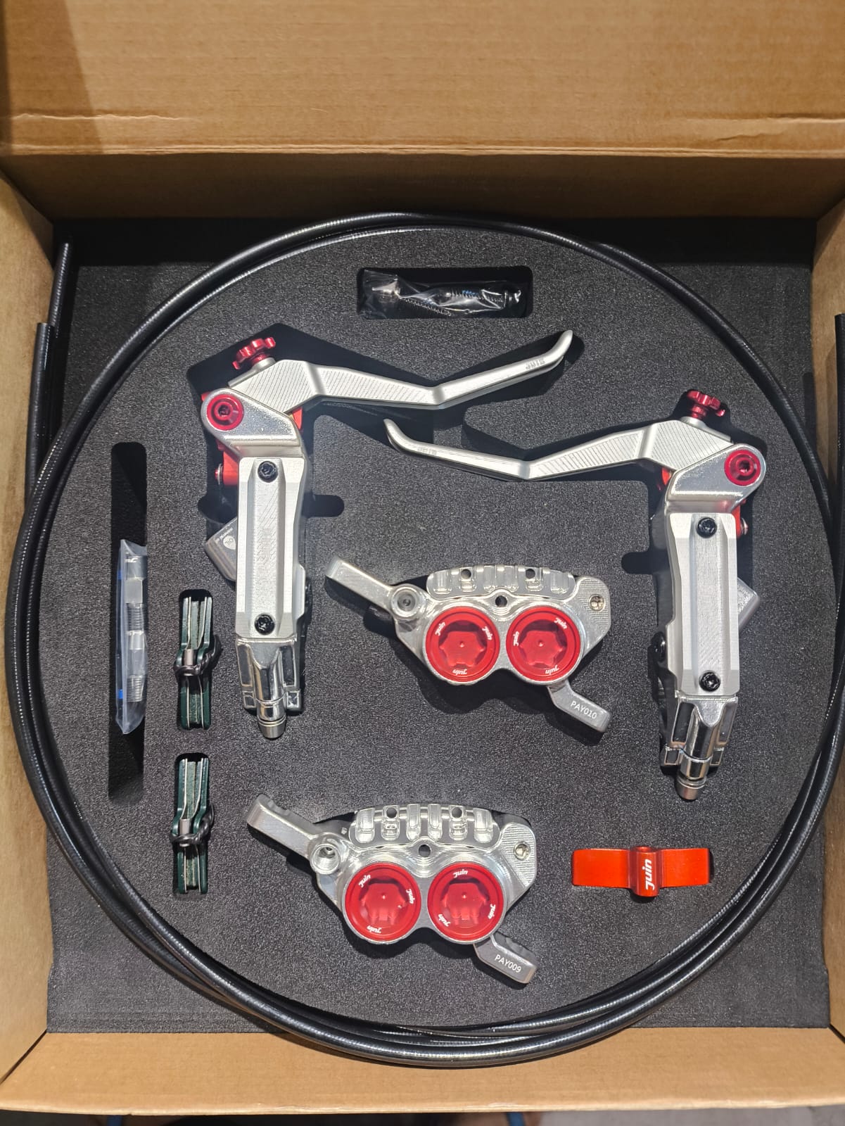 Forged 1 piece Caliper set up with 4 pistons provide a consistent braking feel and power.