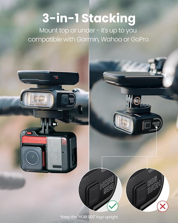 Flexible Dual Mount system allows top or bottom handlebar installation.