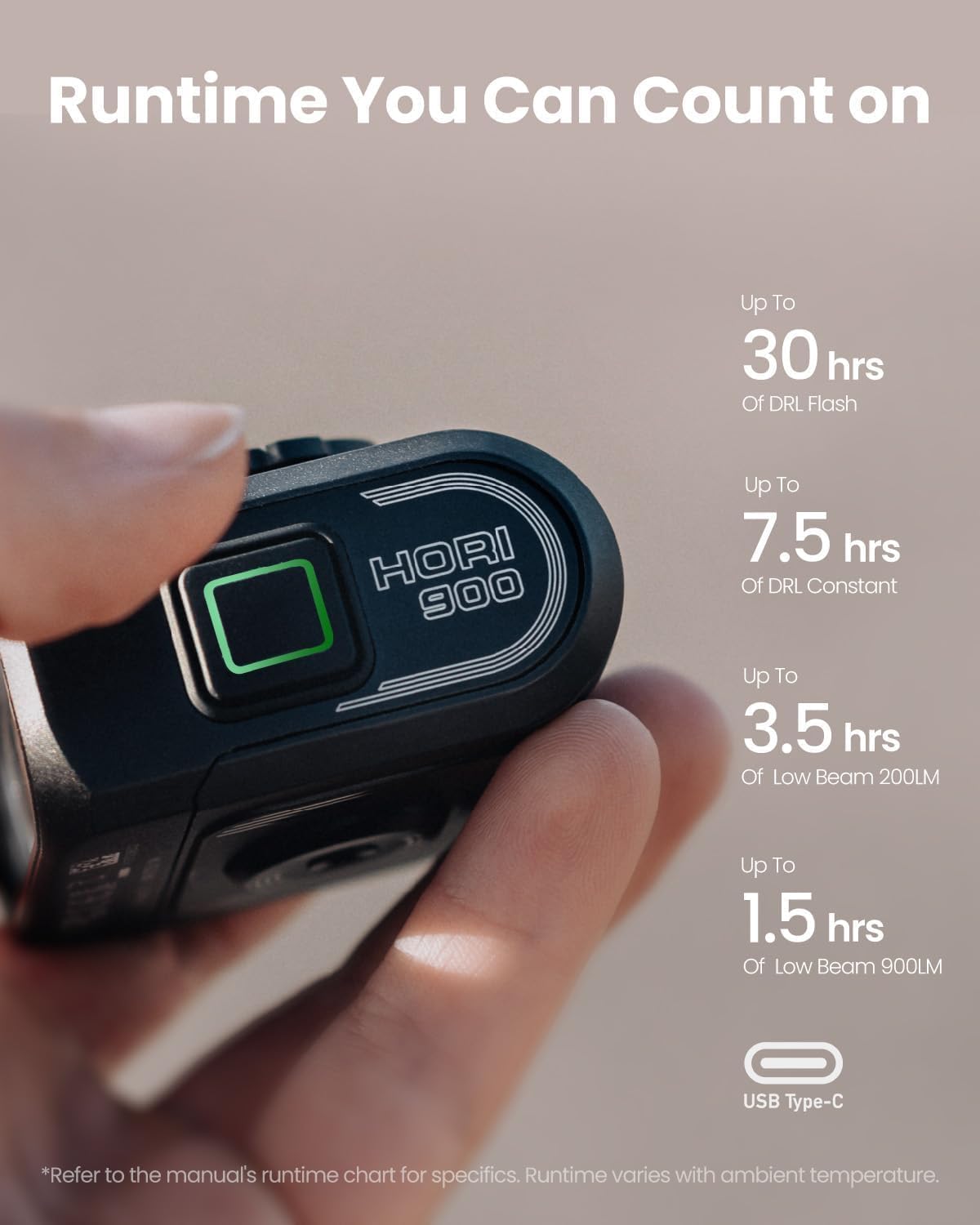 Independent DRL with constant and hyper-flash modes to increase daytime safety.