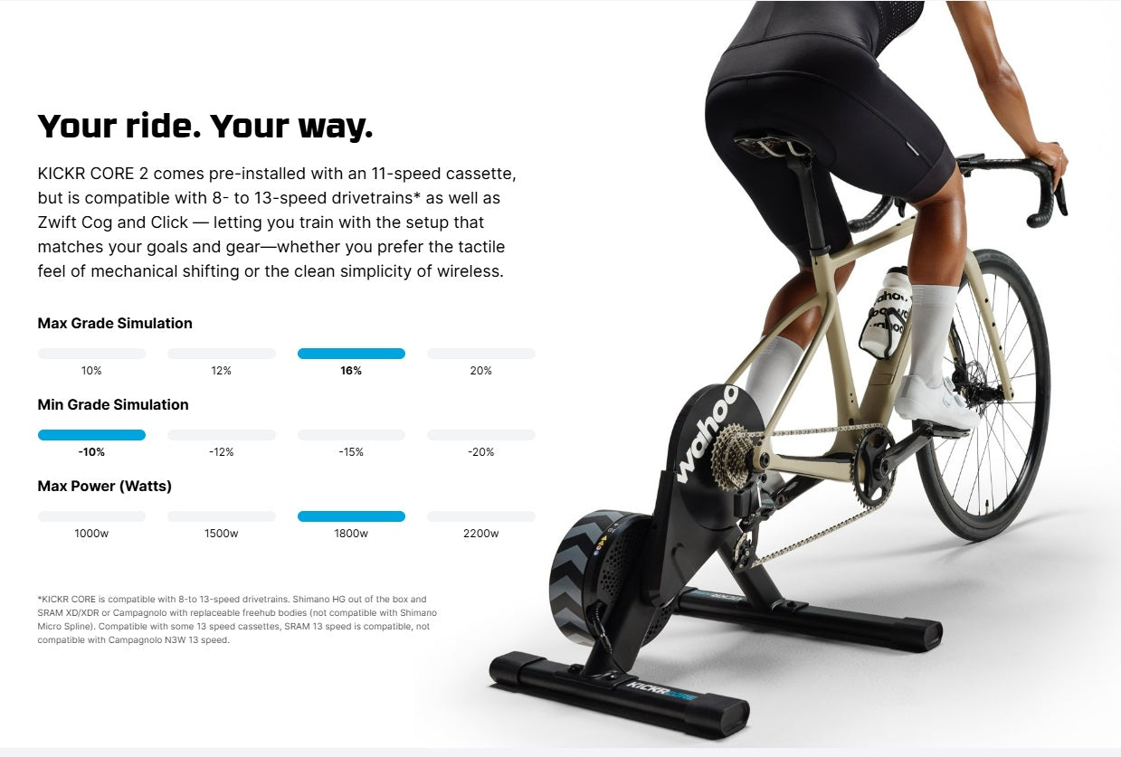 • KICKR CORE 2 Smart Trainer w/ 11-speed cassette