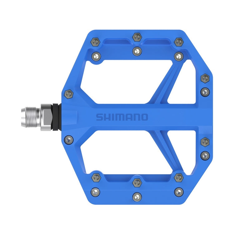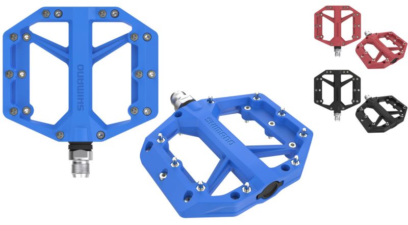GR400 are grippy flat pedals with a trail riding platform shape that feels stable and secure underfoot. Experience even better bike control by pairing with SHIMANO GR series shoes.