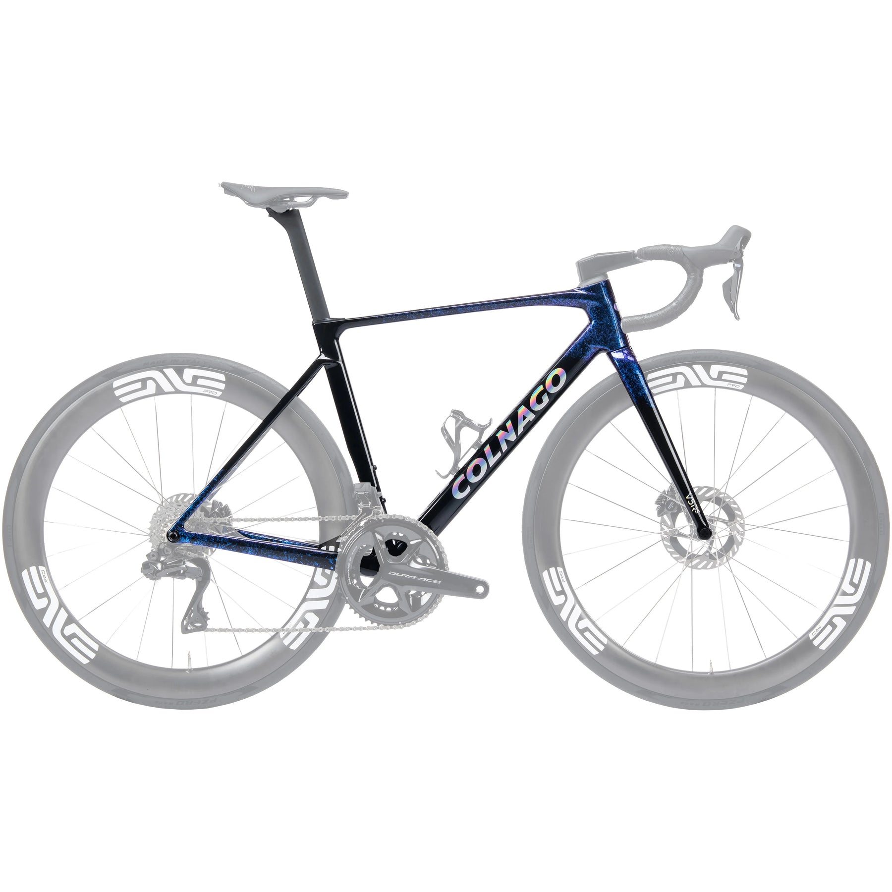 The V5Rs is the lightest Colnago ever built, with a ready-to-paint frame of 685 grams. The frameset weighs 12.5% less than its predecessor without reducing stiffness.