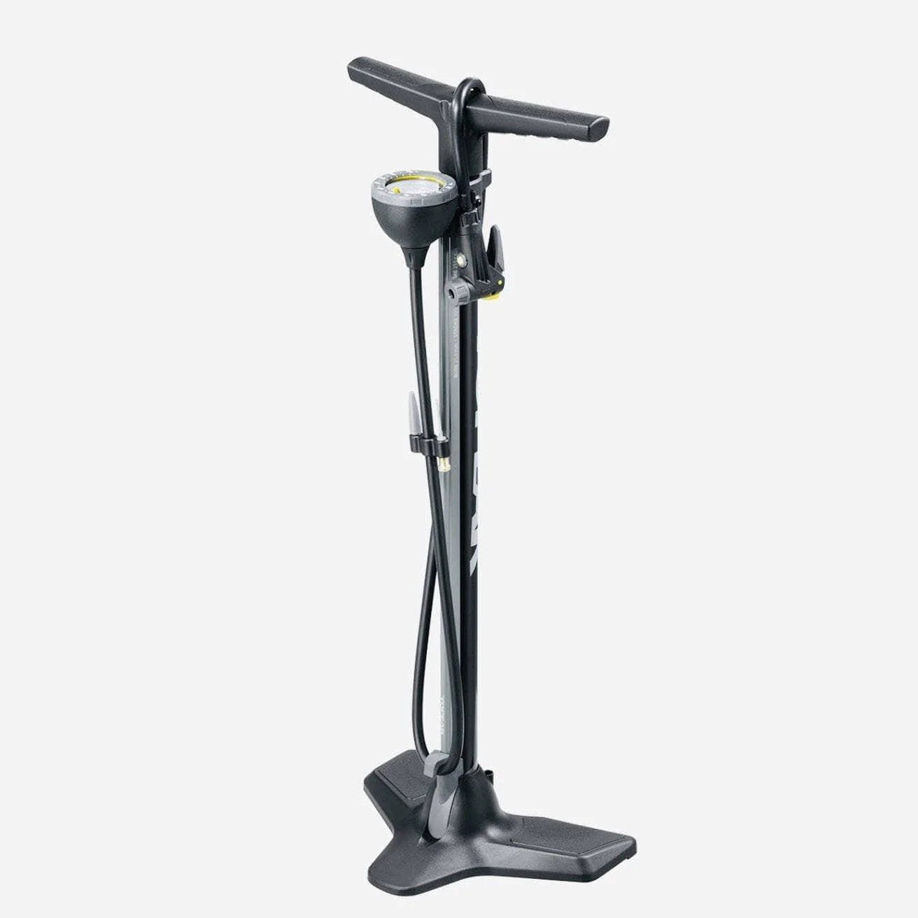 SmartHead® with air release button allows fine-tuning of air pressure. Stable, wide tri-foot base with thinner steel barrel for easier pump up to 200 psi / 14 bar. 120 cm (47 in) extra long hose for easy access to front and rear tire or while the bike is on workstand.