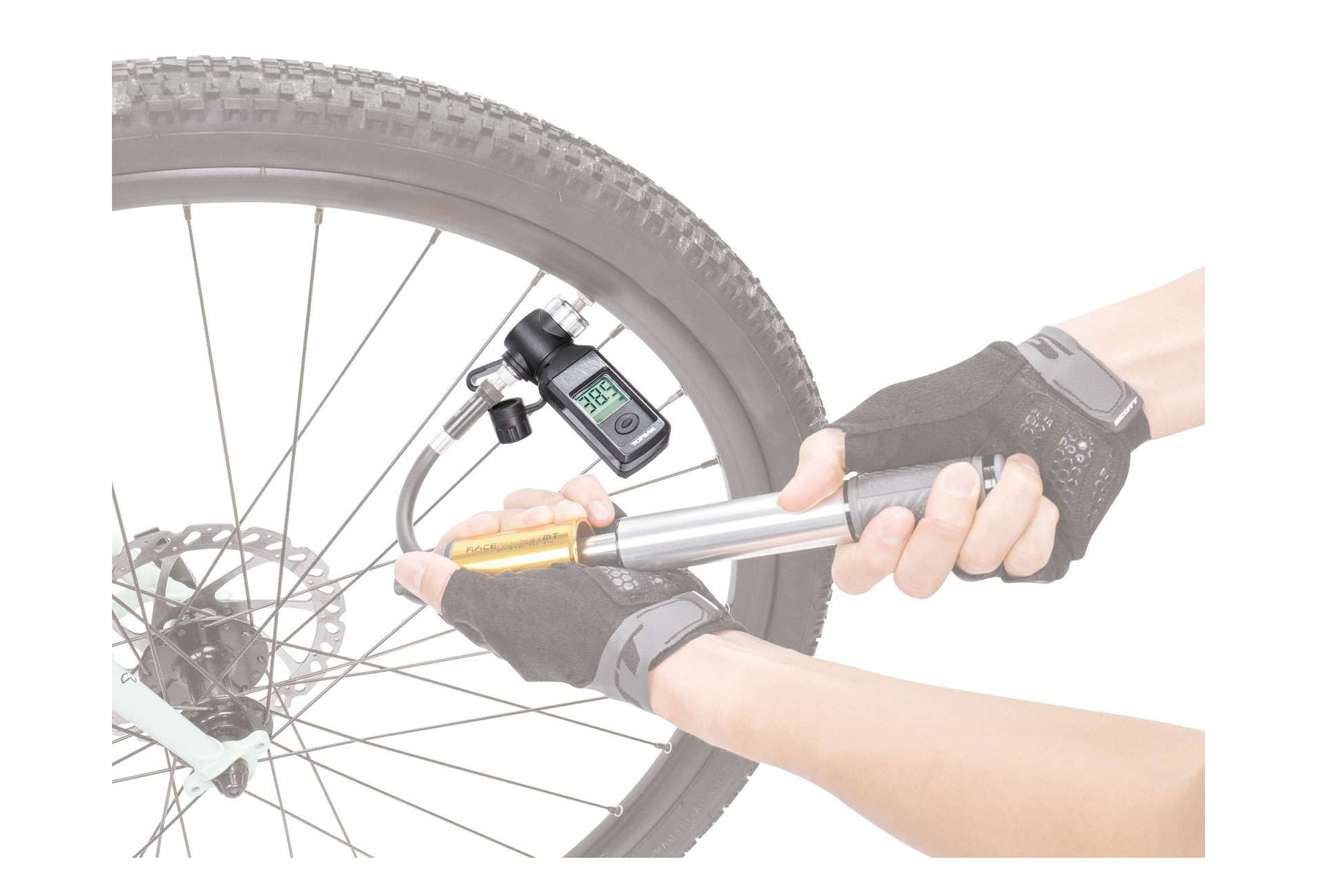 Easy-to-read digital gauge can be attached to a pump or used alone and provides accurate pressure readings up to 300psi / 20.7bar. Rotating head works with Presta, Schrader or Dunlop valves on bike / motorcycle / car tires, forks or shocks while the Thumb Lock lever ensures an airtight seal. The air release button allows fine tuning pressure.