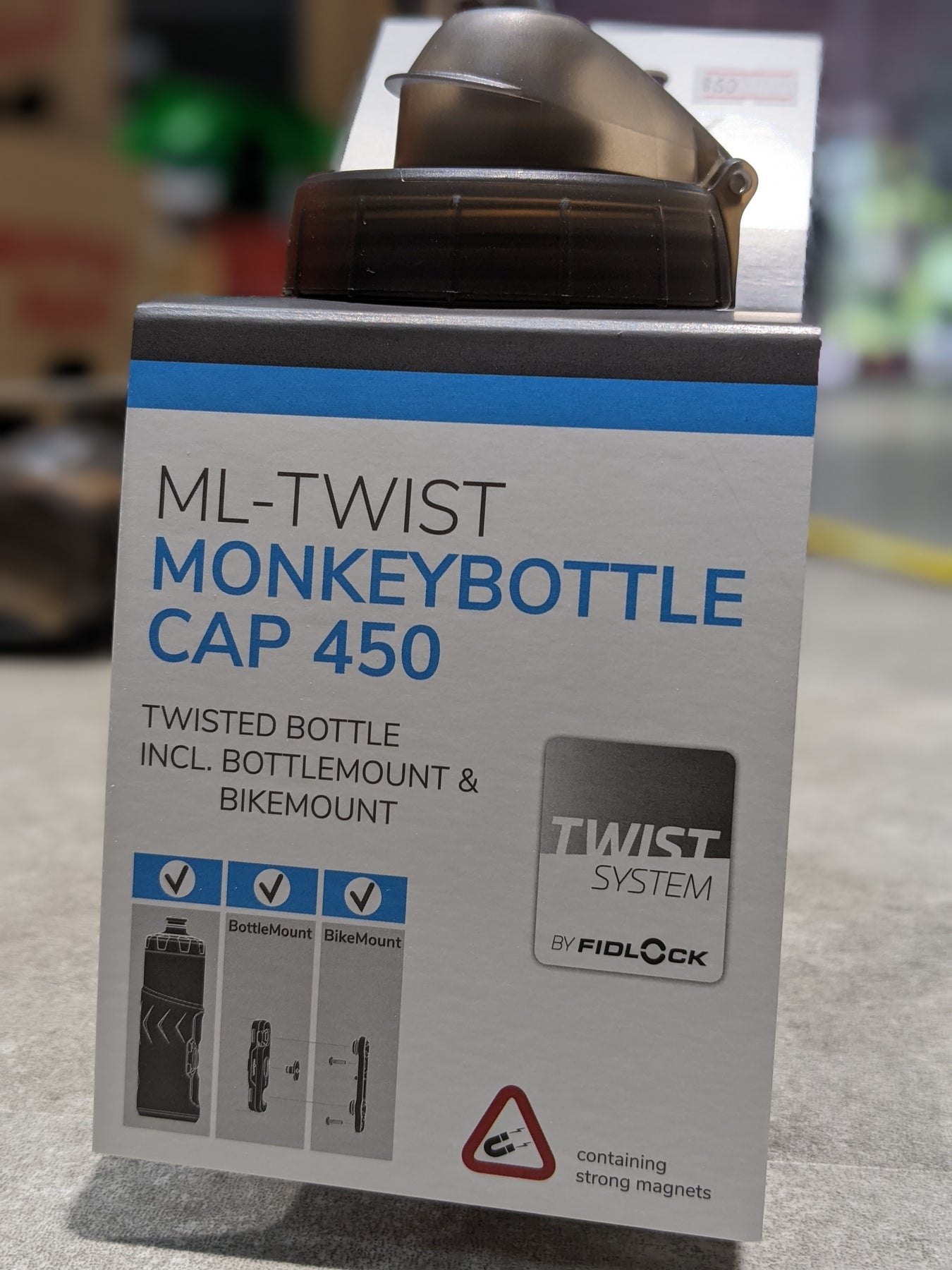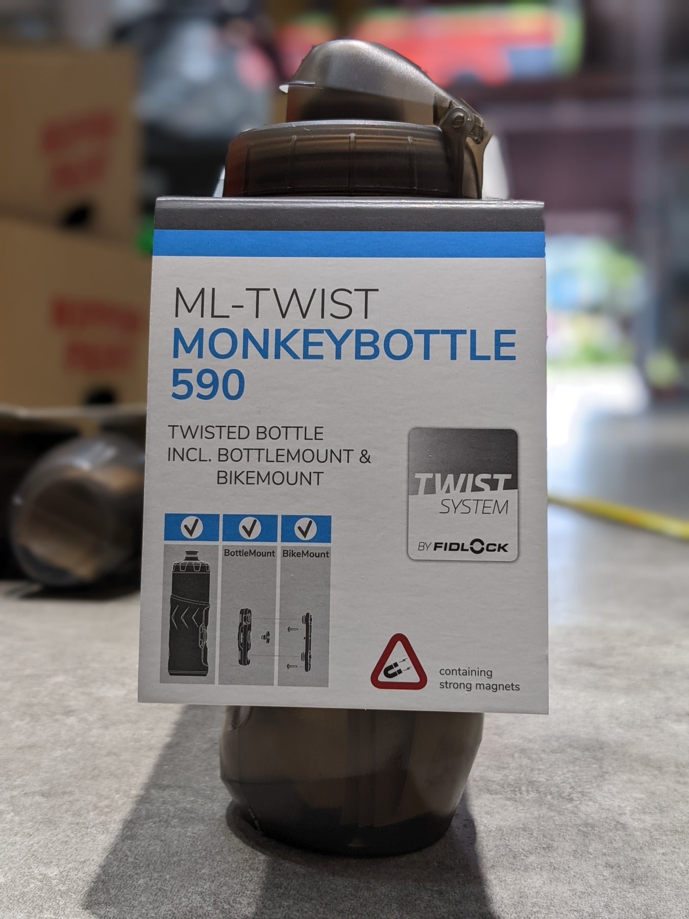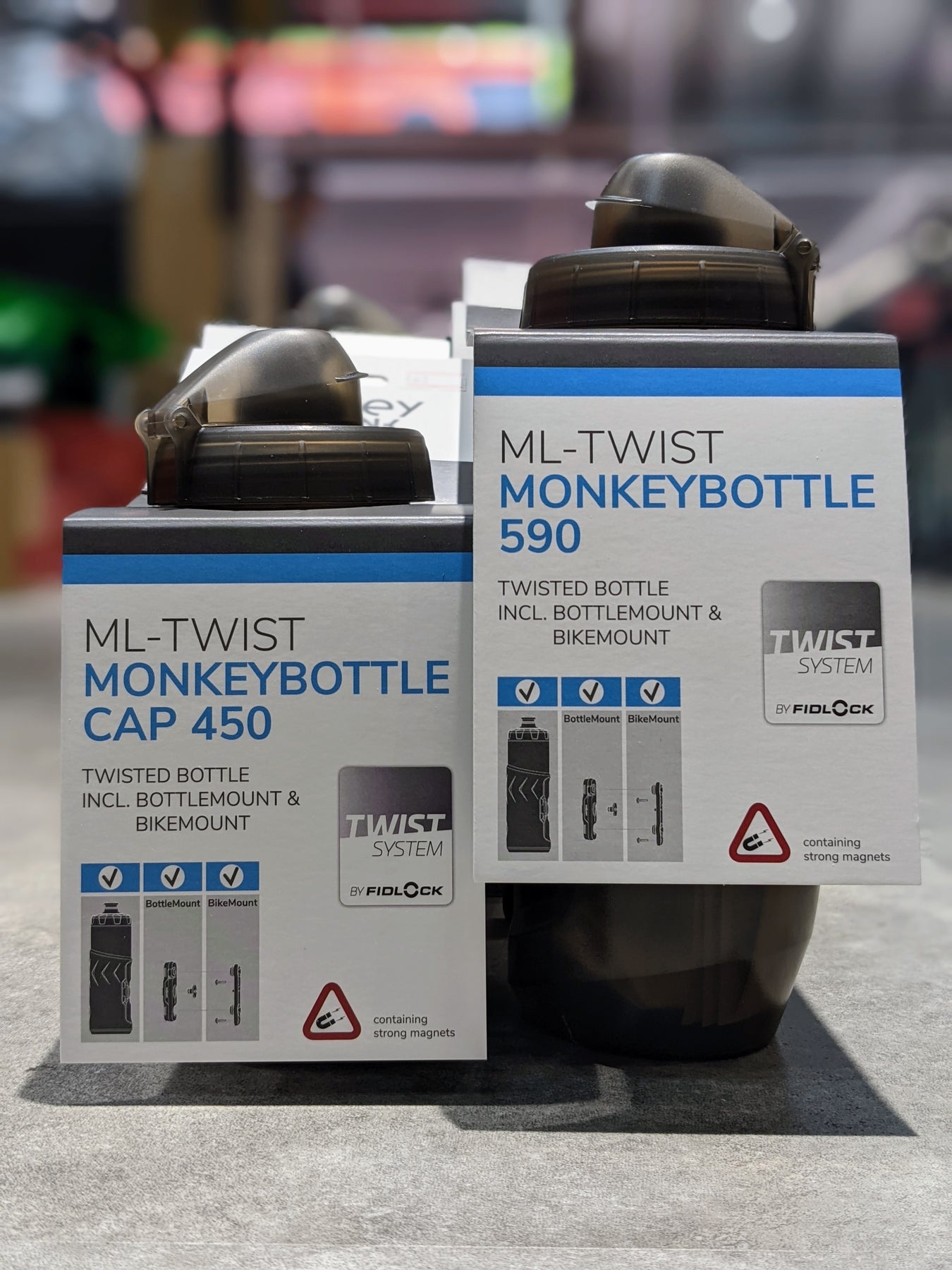 The MonkeyBottle TWIST 450/590 ml is a great water bottle with MonkeyLink system which functions with integrated bottle magnets. You can easily attach it to your bike with a compatible bottle cage. Thanks to the magnets, the bottle intuitively latches on to the bottle cage and the automatic engagement mechanism keeps it firmly in place on your bike, even on bumpy roads.